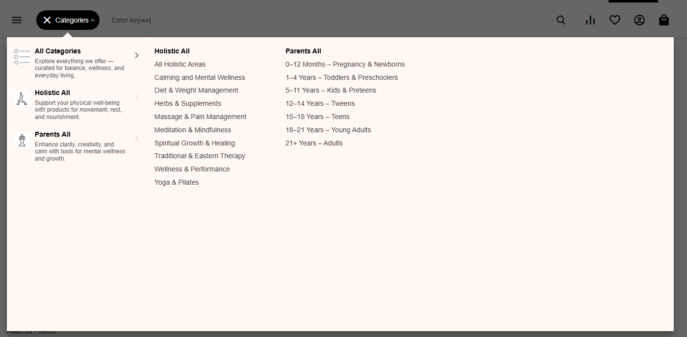 Categories (e.g. Holistic, Parents, Travel, Seniors)